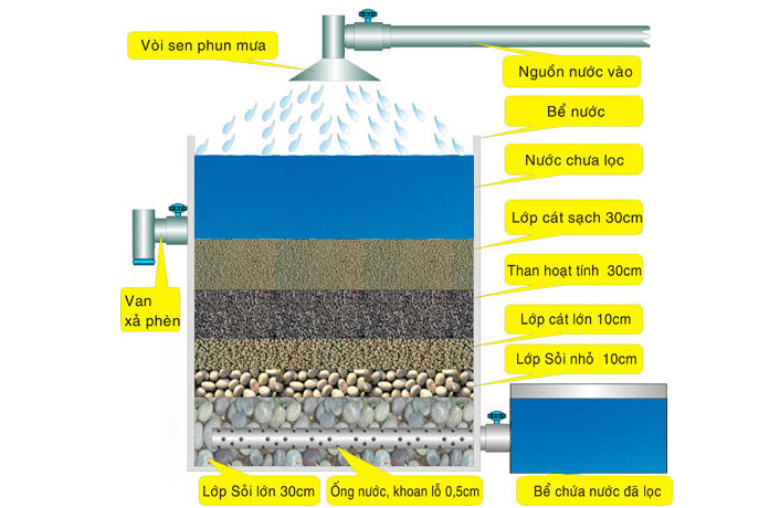 Than hoạt tính là những vật liệu lọc nước có khối lượng rất nhẹ, bề mặt tiếp xúc với nước rất lớn nên có thể dễ dàng hấp phụ các độc tố, hoá chất hoà tan trong nước, giúp lọc sạch nước một cách triệt để nhất. Đồng thời, với những đặc tính hóa học của than hoạt tính và cát thạch anh là chất không bị phản ứng với các tác nhân hóa học khác có trong nguồn nước, nên sẽ đảm bảo được tuyệt đối sự an toàn trong quá trình xử lý nước và đảm bảo chất lượng của nguồn nước.